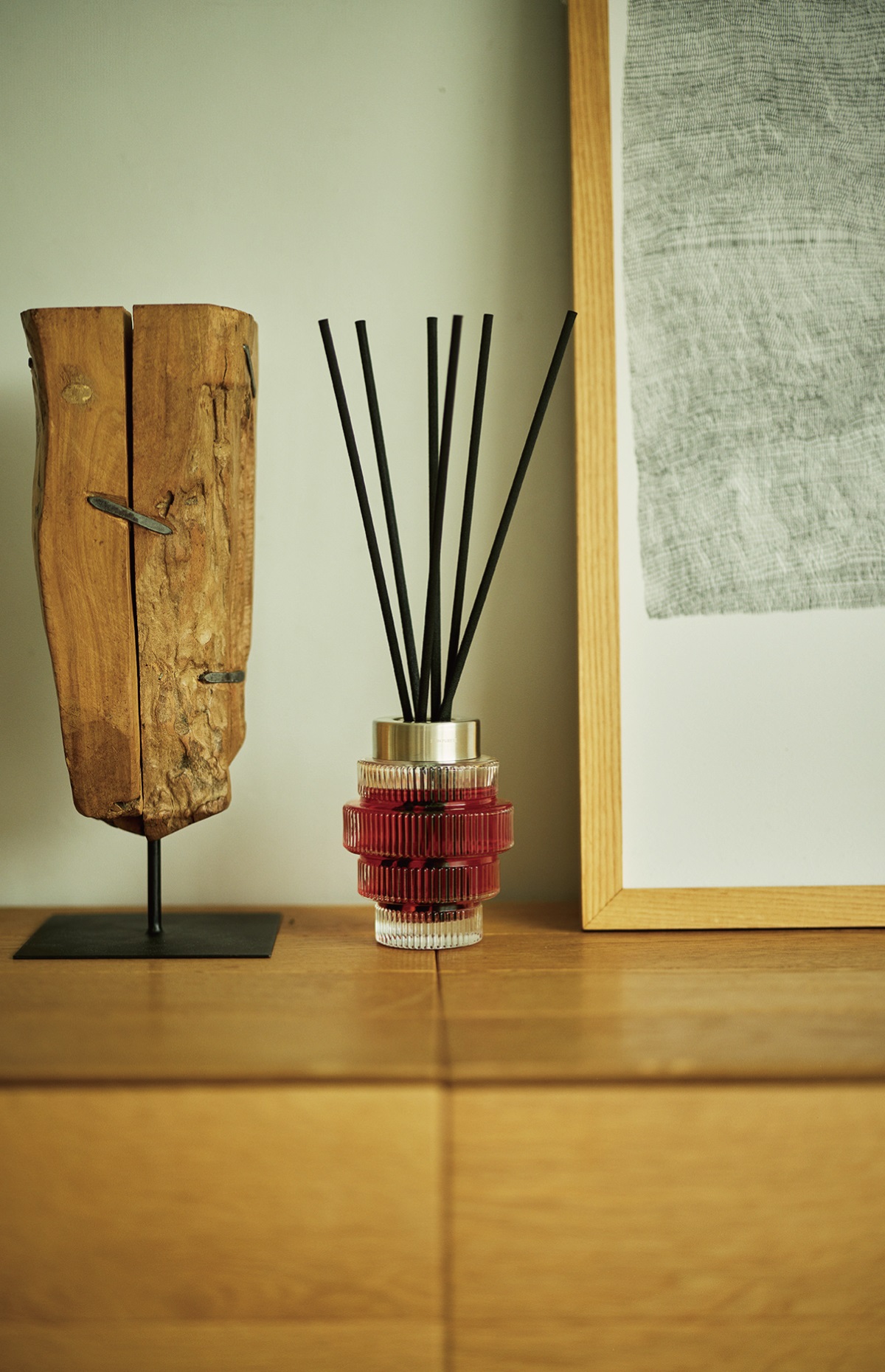 その中でふと生まれる小さな乱れを、香りの力で整えていくことで、暮らし全体が穏やかに育まれ、やがて心のあり方もそっと変化する。香水のようにトップ・ミドル・ラストと、時間とともに美しく移ろうディフューザー。香りが空間にそっと溶け込み、日常や心にやさしく寄り添う。脳波解析に基づいたエビデンスのある香りが穏やかに広がり、心の波を穏やかに整えていく。