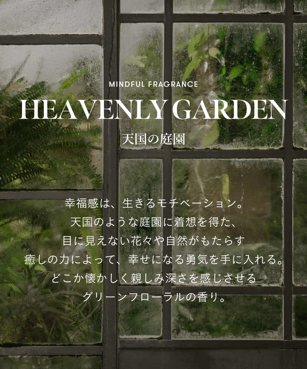 シグネチャーパフュームシリーズの、“HEAVENLY GARDEN”をトリートメントのスムースタイプの香りに採用。リラクシーで安心感に包まれるグリーンフローラルの香りが、ストレスフリーなモードを引き出します。天国のような庭園に着想を得た、フレッシュなブラックカラントにベルガモット、ジャスミン、ローズの花々が華やかに咲き誇るように広がります。溶け合うように香り立つオークモスが、まるで草花が生い茂る庭園にいるかのような、優しさと深い安らぎに包まれるリラクシーな香り。