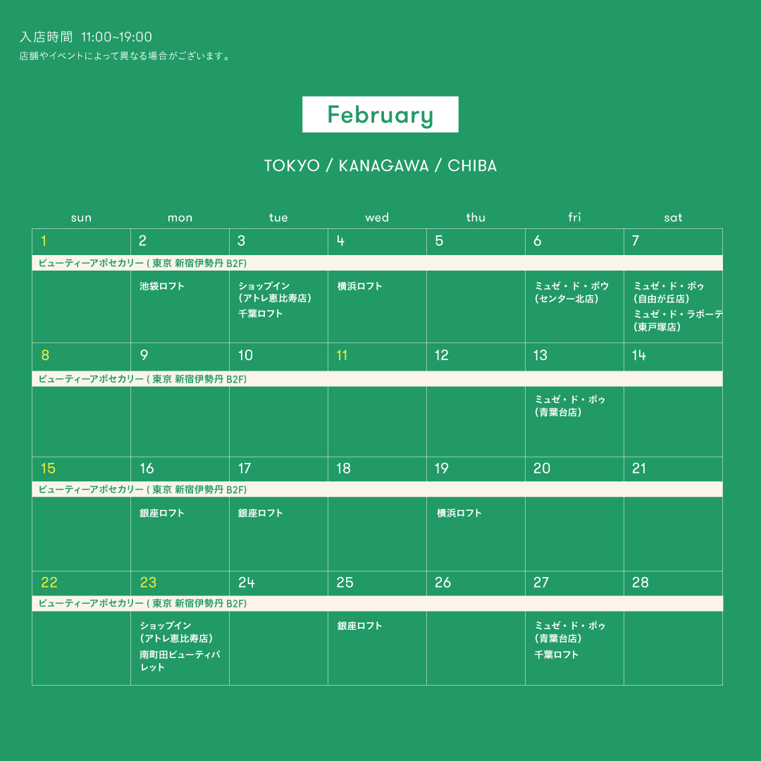 [東京都]渋谷店(11:00~20:00) / NEWoMan新宿店(11:00~20:00) / 日本橋店(10:30~20:00)